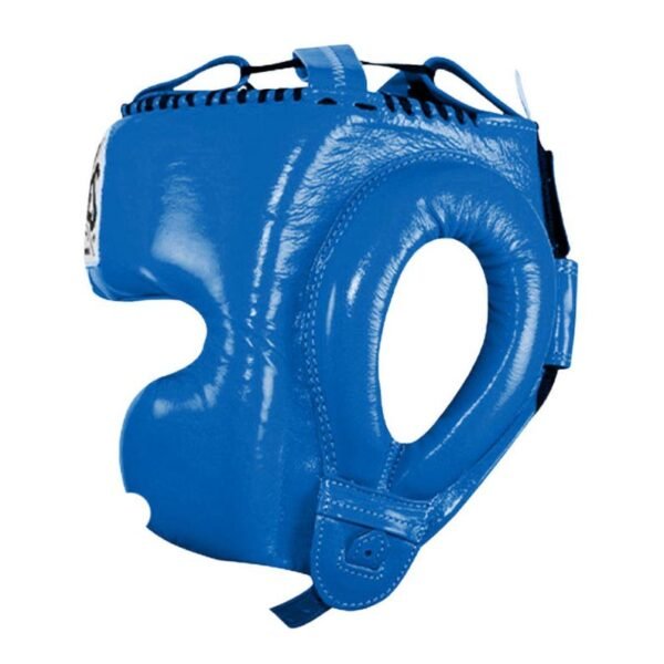 This blue boxing headgear is engineered to protect critical impact zones including the cheeks, forehead, and temples while maintaining excellent peripheral vision. The ergonomic shape ensures a snug fit, reducing movement during intense sparring sessions.